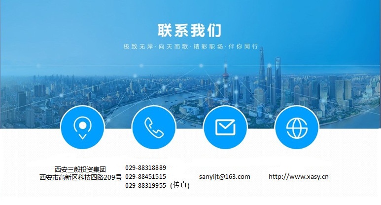 公司名稱:西安三毅投資集團 公司地址:西安市高新技術開發(fā)產(chǎn)業(yè)區(qū)科技四路209號 郵政編碼:710065 公司電話:029-88318889 029-88451515